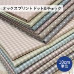 コットン 生地 オックス プリント ドット チェック 水玉 格子柄 くすみカラー 綿 入園 入学 ハンドメイド メール便2mまで 販売単位10cm