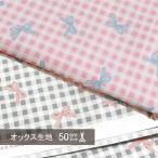 オックス 生地 ギンガムチェック リボン かわいい 50cm単位 綿100% 韓国