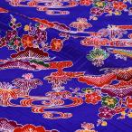 和柄 生地 紅型 びんがた 流水に松竹梅 (青) 10cm単位 切り売り