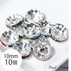 ロンデル 10mm 10個 平型 スペーサー シルバー 銀 ストーン色 クリア 天然石 アクセサリー ブレスレットパーツ ビジュー キラキラ