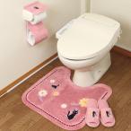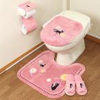 魔女の宅急便 トイレマットセット 3点セット ジブリ ジジ 花さんぽ トイレマット 58×60cm 兼用フタカバー ペーパーホルダーカバー ピンク