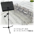 譜面台 折りたたみ 軽量 マイクホルダー付き オーケストラタイプ 高さ調整 100cm〜140cm 艶消しブラック 黒 穴あきタイプ 爆買