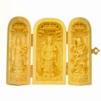 阿弥陀如来 地蔵菩薩 観音菩薩 天然木製(柘植ツゲ) 約10cm 阿弥陀三尊像 木彫仏像 彫刻 三開仏