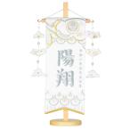 名前旗 押絵図柄 刺繍 白揃え御名前旗台付セット 白鯉滝 (特小)旗サイズ約23cm 全長28.5cm 五月人形 男の子 節句 刺繍