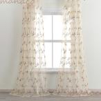刺繍 レース カーテン 2枚セット ベージュ ホワイト ポール 花柄 葉 上品 目隠し 生地感 アイボリー のれん