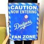 ブリキ看板 ドジャース ロゴ おしゃれ USA製 CAUTION NOW ENTERING 正規ライセンス品 FAN ZONE 立ち入り注意 壁飾り ブルー