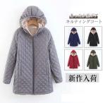 キルティングコート 中綿コート コート キルティングジャケット レディース 冬 アウター 無地 冬 裏起毛 裏ボア フード付 体型カバー 大きいサイズ 40代50代