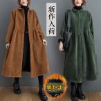 コート レディース 秋冬 裏起毛コート 裏ボア アウター ロング丈 コーデュロイ カーディガン 体型カバゆったり 長袖 膝下丈 折り襟 きれいめ お洒落 カジュアル