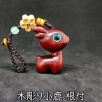 根付 小鹿 木彫り バッグチャーム 鹿 花 ファッション小物 key22061