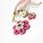 バッグチャーム レディース かわいい おしゃれ 名入れ無料 ネーム 本 革 バッグ ストラップ フラワー 花 日本製 スワロフスキー 女性 ギフト