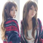 クールブラウン ゴールドブラウン ストレート ロング フルウィッグ 前髪あり 自然 ナチュラル かわいい ストレート 耐熱 イベント コスプレ ネット付き