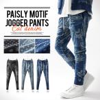 デニム メンズ セットアップ スウェットデニム カットデニム スリム パンツ ジョガーパンツ スウェットパンツ ライン 総柄 スリム カジュアル