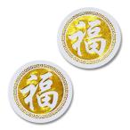 福 シール 小 2枚セット ステッカー 中国 開運 金 ピカピカ