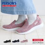 ニットスニーカー レディース 黒 通気性 メッシュ ローカット アッパーニット スリッポン パーソンズ PERSON'S ブラック ベージュ 5817 爆買