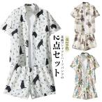 上下 ショートパンツ メンズ 花柄 夏 接触冷感 上下セット 夏服 半袖 涼しい 総柄 短パンツ 大きいサイズ アロハシャツ セットアップ 柄シャツ