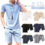メンズ 綿麻 上下セット 夏服 半袖tシャツ ハーフパンツ 2点セット おしゃれ ジャージ セットアップ 半袖 トップス ショートパンツ 夏用 甚平