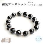 磁気ブレスレット 天然石 10mmヘマタイト+水晶 健康ブレスレット 睡眠改善 血行促進 父の日