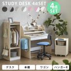 学習机 セット シンプル 勉強机 子供 収納 デスクセット 4点セット 学習デスク 引出し付き ハンガーラック コンパクト 木製 子供用 子供部屋 足元収納