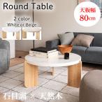 ラウンドテーブル (Lサイズ) 高さ38cm 大理石調 石目調 天然木 シンプル コーヒーテーブル ソファテーブル センターテーブル サイドテーブル 北欧 ナチュラル