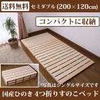 すのこベッド 折りたたみ ひのき 4つ折り セミダブル すのこマット スノコ 桧 檜 ヒノキ