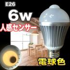 LED電球 E26 人感センサー 6W 付LED電球 自動点灯 省エネ LED電球E26 昼光色(6000-6500k)