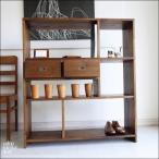 チーク無垢材 シェルフ引出二杯Med オープンシェルフ 飾り棚 収納棚 本棚 ラック シンプル 間仕切り 無垢材家具