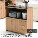 キッチンカウンター キッチンボード 90 幅 コンセント付き レンジ台 キッチン収納 食器棚 カウンター 引き出し 付き キャスター付き