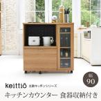 キッチンカウンター キッチンボード 90 幅 コンセント付き レンジ台 キッチン収納 食器棚 カウンター キャスター付き