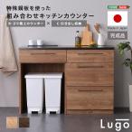 日本製 特殊鋼板を使った組み合わせキッチンカウンター【Lugo-ルゴ-】120cm 引き出し収納+ゴミ箱上カウンター
