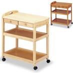 天然木を使った引き出し付きキッチンワゴン キャスター付 ナチュラル ブラウン