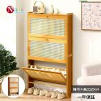NADLE シューズボックス 薄型 スリム 幅70CM 3段 大容量 靴箱 下駄箱 シューズラック 通気性 天然竹製 玄関収納 収納家具 省スペース コンパクト 収納棚 靴棚
