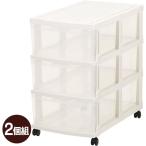 収納ケース 3段2個組 キャスター付き 小物掛けネット付き ワイド収納チェスト国産 収納ボックス たんす 衣類 押入れ