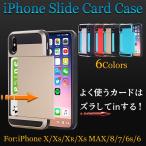 iPhone アイフォン スライド カード ケース カードスロット TPU ポリカーボネート 耐衝撃 バイカラー シンプル X XS XR XS Max 8 7 6s 6 送料無料