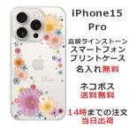 iPhone15 Pro アイフォン15プロ らふら 名入れ スマホケース ラインストーン スマホカバー 押し花風 ポップフラワー