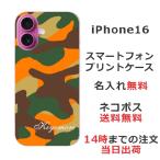 iPhone16 アイフォン16 らふら 名入れ スマホケース 迷彩 オレンジ