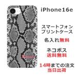 iPhone16e アイフォン16e らふら 名入れ スマホケース へび柄 ブラック