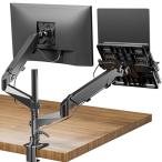 デュアル ノートパソコン/モニターアーム モニターアーム 2画面 トレイ付き 高度0~90cm ガススプリング式 15〜32インチ対応
