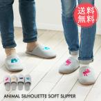 アニマルシルエット ソフト スリッパ かわいい おしゃれ 洗える ニット 刺繍 メール便送料無料