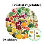 大容量フルーツ&ベジタブルシール【50枚】 ケース付き ステッカー フレークシール やさい くだもの スマホ パソコン PC いちご りんご ワンポイント デザイン