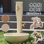 水栓柱 水周り ガーデンパン 立水栓のセット 蛇口付 水栓ユニット テラコッタ かわいい おしゃれ 蛇口2個セット ガーデン お庭の蛇口