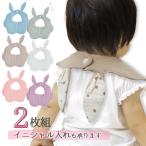 スタイ 2枚セット 耳付 うさぎ イニシャル入れ 可愛い 男の子 女の子 赤ちゃん ベビー 贈り物 ギフト 出産祝い うさ耳 ボタン コットン よだれかけ シンプル