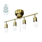 スポットライト 4灯 E26口金 引っ掛けシーリング ノーシェード ストレートタイプ 真鍮 金 サテン 銀 調光調色LED電球4個+専用リモコンセット