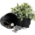 フェイクグリーン型隠し金庫 植木鉢 貴重品収納 コンパクト インテリア雑貨 (ブラック)