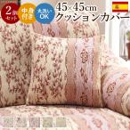 スペイン製 クッションカバー 中身付き 同色2個セット 〔カロリーナ〕 45×45cmサイズ用