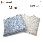 シートクッション 4枚セット 43×43cm (ミラ) アンティーク ブルー ベージュ 花柄 ジャガード 椅子用 紐付き