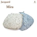 シートクッション 43×41cm (ミラ) アンティーク ブルー ベージュ 花柄 ジャガード バテイ 椅子用 紐付き