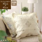 クッションカバー 45×45cm アンティーク 高級感 フリル 起毛 キルト 洗える アイボリー グレー おしゃれ リトス 爆買