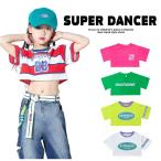 キッズダンス衣装 Tシャツ トップス ヒップホップ 衣装 K-POP 韓国 黄緑 紫 白 緑 オレンジ 水色 ピンク