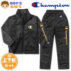 送料無料 男児 キッズ 裏トリコット トレーニングスーツ Champion 長袖 上下組 ジャージ 箔ロゴプリント 刺繍 td-0582c-bk