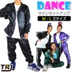 キッズダンス衣装 サテン ジャージ 上下セットアップ キッズ 女の子 男の子 ブラック グリーン パープル M Lサイズ キッズ〜大人